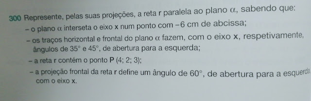 – o traço horizontal da reta d tem abcissa nula e 3cm de afastamento e as suas projeções, horizontal e frontal, fazem com o eixo X, ângulos de 45º (a.e.) de abertura para a esquerda;